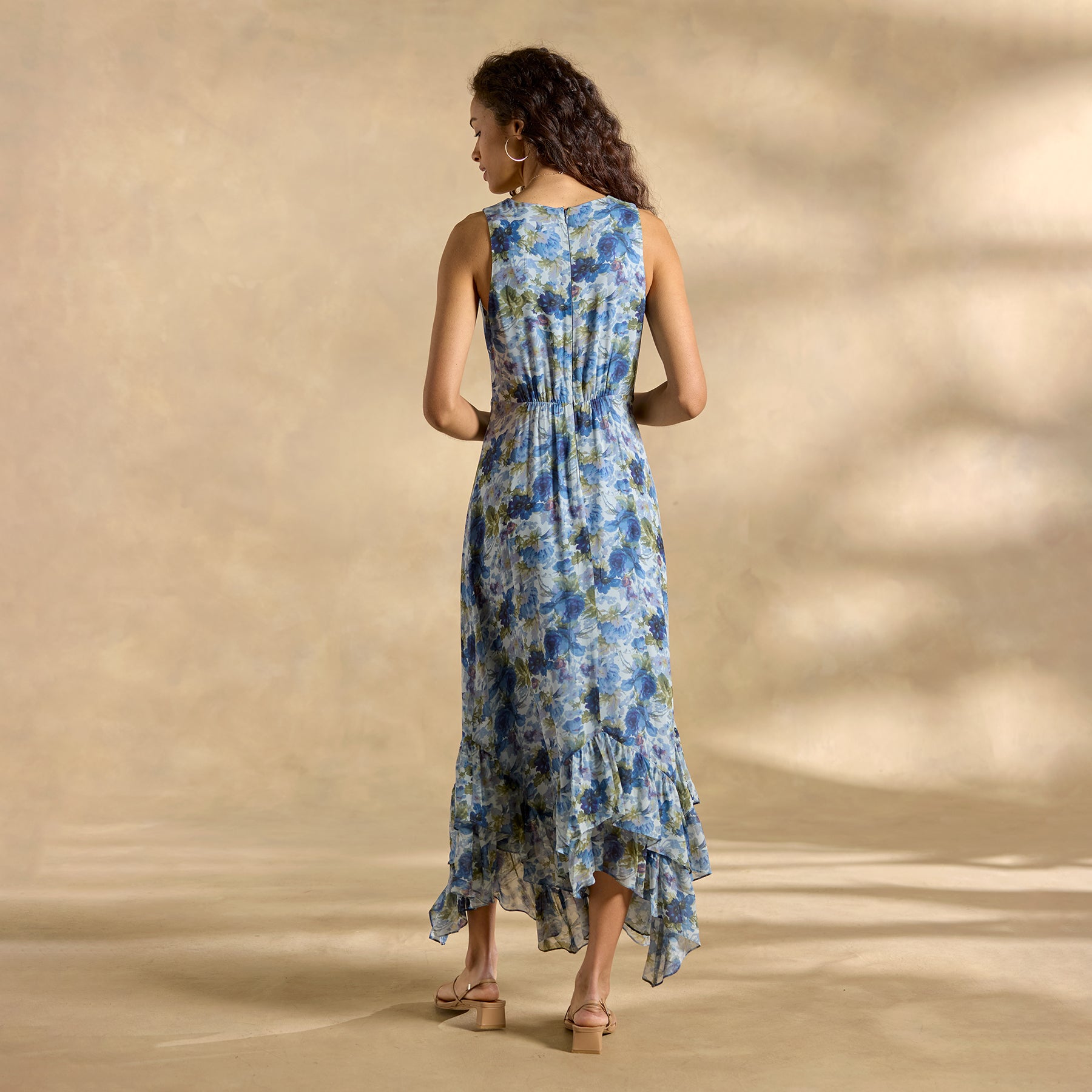 Equal parts outgoing and demure. our Champs de Fleur Printed Dress cultivates charm at every turn—with a flattering surplice neckline. subtle smocking and an ultra-femme asymmetrical ruffled hem. Back zipper with elastic for comfort; fully lined. Viscose/rayon. Machine wash. Imported. Exclusive. Sizes 2–16. Approx. 56l.