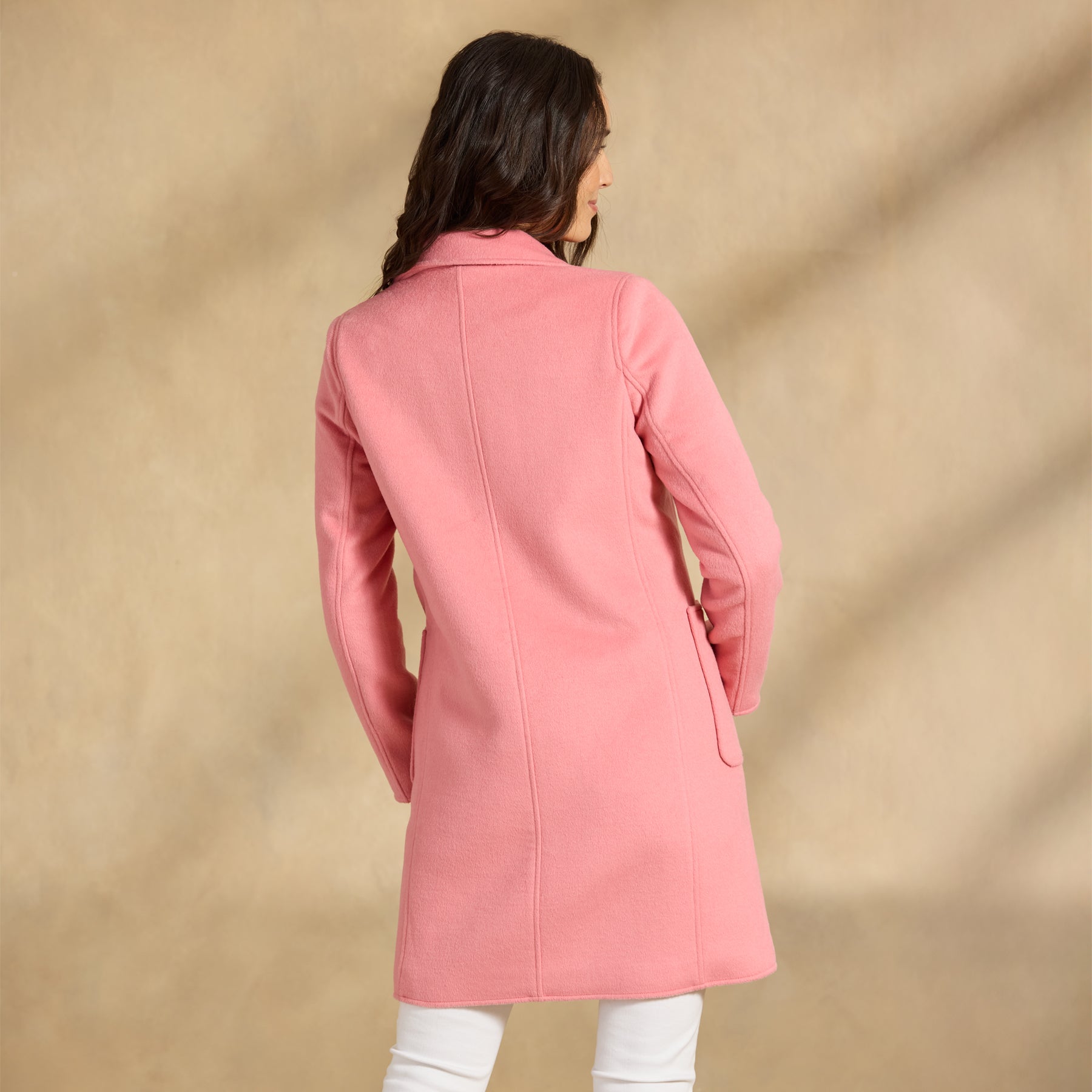 Stylish and bold. our stunning double breasted topper in menswear inspired pinstripes boasts two patch pockets and a contrast print lining. Polyester/wool. Dry clean. Imported. Exclusive. Sizes XXS (00). XS (0–2). S (4–6). M (8–10). L (12–14). XL (16–18). Approx. 34l.