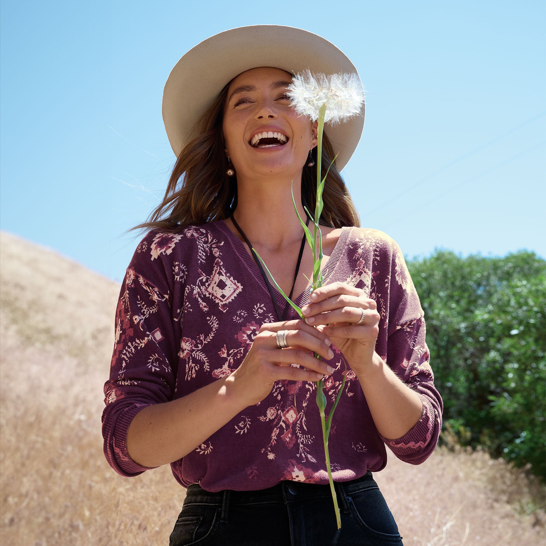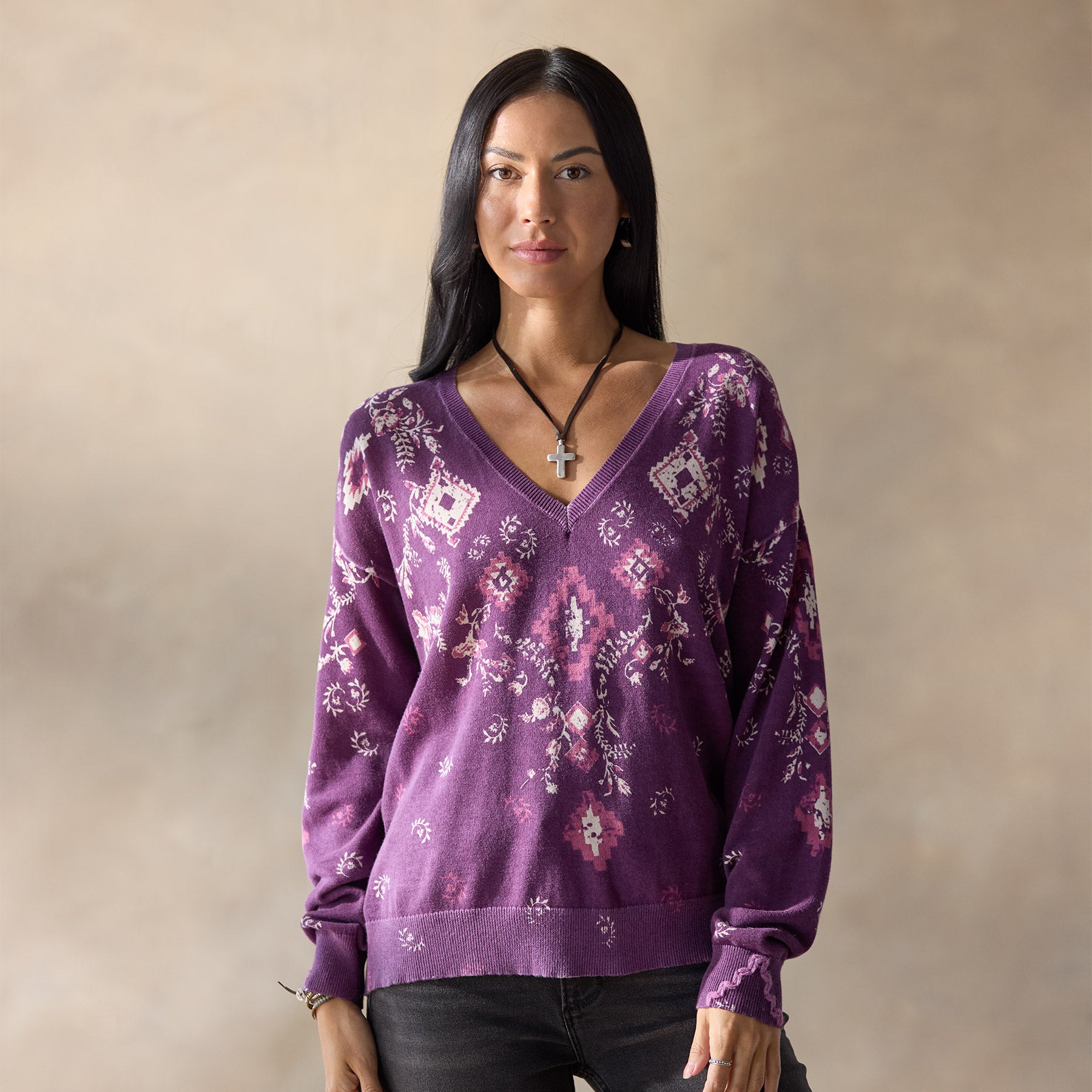 A new Sundance classic. with bandana/floral print front and back and hand-embroidered embellishment at the open V-neckline. Exposed seams. rib trim. relaxed fit. Cotton. Hand wash. Imported. Exclusive. Sizes XXS (00). XS (0–2). S (4–6). M (8–10). L (12–14). XL (16–18). Approx. 22l.