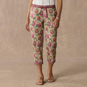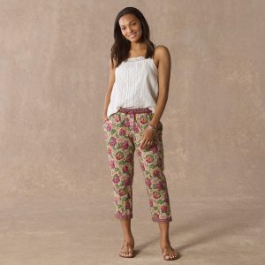 Perfectly comfortable for lounging. yet pretty enough to wear out on the town. Relaxed fit. drawstring pants in a vibrant print. Cotton. Machine wash. Imported. Exclusive. Sizes XS (0-2). S (4-6). M (8-10). L (12-14). XL (16-18). 23 inseam.