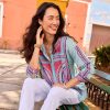 Our Nolia Top is the ultimate in casual elegance. The notch neckline henley is fashioned from the softest cotton slub; awash with alluring geometric embroidery and lace detail in the back neck. Elbow-length sleeves and straight hem. Machine wash. Imported. Exclusive. Sizes XS (0–2). S (4–6). M (8–10). L (12–14). XL (16–18). XXL (20–22). Approx. 23l.