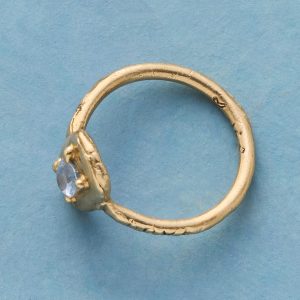 Inspired by the buried treasure of ancient civilizations. Jes MaHarry’s sapphire ring is hand cast of 14kt gold using the lost wax method. meaning no two will be exactly alike. Handmade in USA. Exclusive. Whole sizes 5-9.